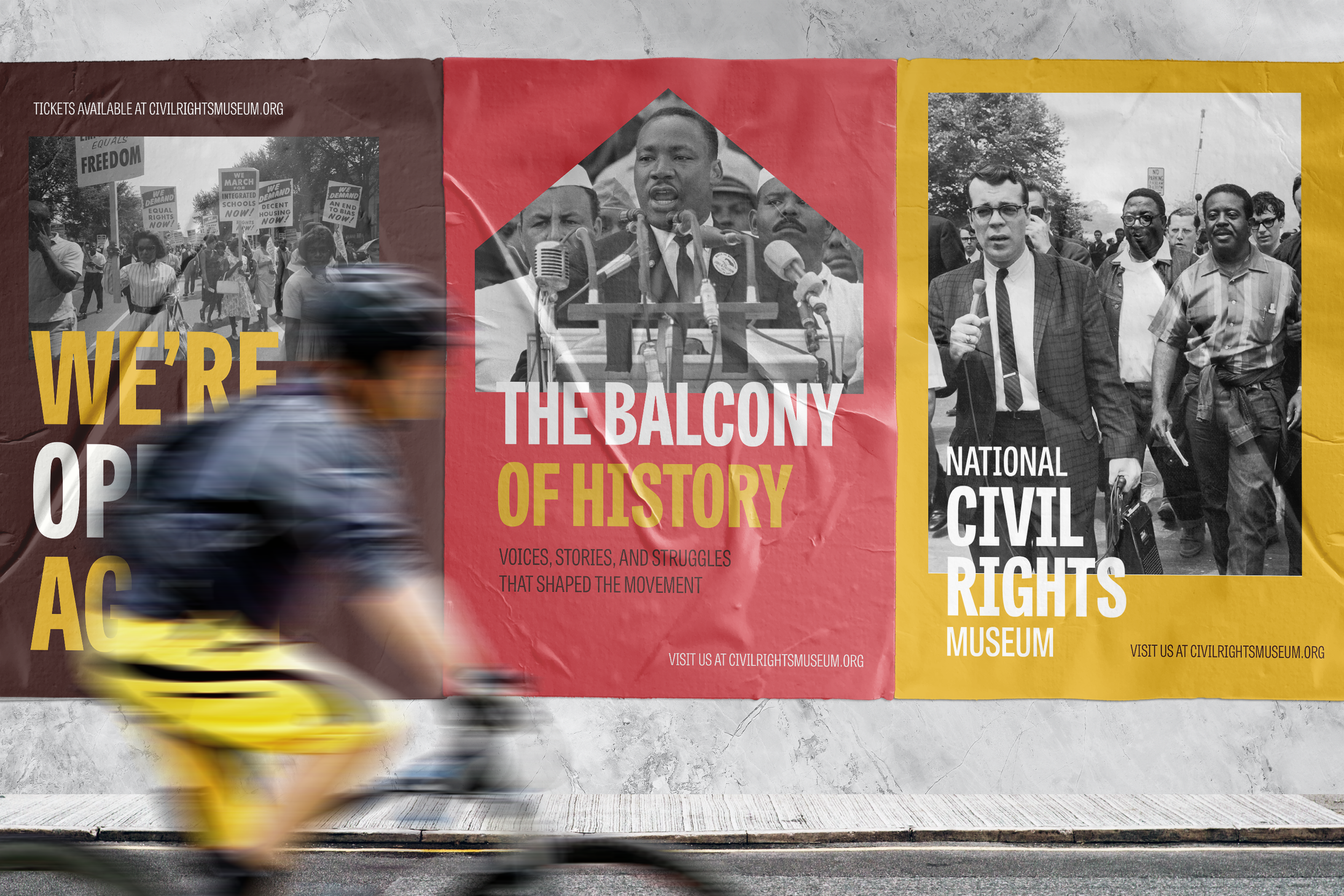 A conceptual rebrand for the National Civil Rights Museum, focused on modernizing its visual identity while honoring the legacy of the Civil Rights Movement. The system is designed to feel bold, human, and deeply rooted in the stories the museum preserves.
